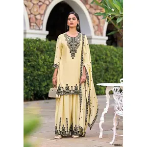 Beige Chinon Readymade Plazzo Suit...