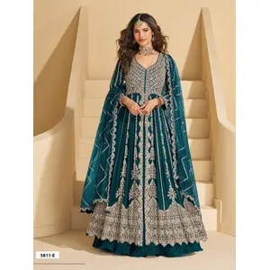 Teal Chinon Readymade Anarkali...