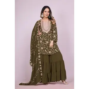 Designer Ethnic Suit Set Gold Crush...
