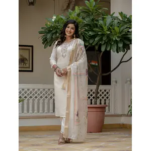 Off White Color Roman Silk Fabric...