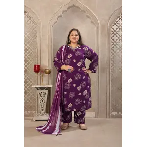Purple Color Rayon Fabric Prited Plus...