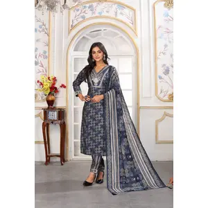 Grey Color Rayon Fabric Prited Plus...