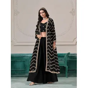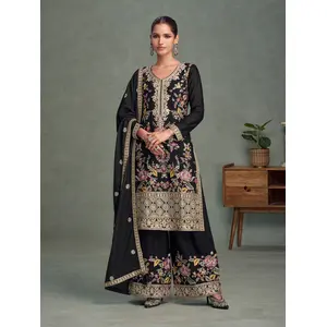 Black Color Chinon Fabric Heavy...