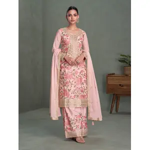 Pink Color Chinon Fabric Heavy...