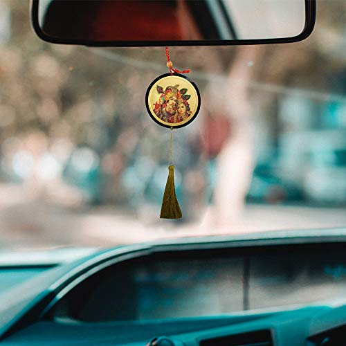 This car hanging pendant is designed with double side printed / both side facing Hindu Talisman. It keeps away bad omens around us and enhances harmony peace energy happiness and prosperity to the home. It acts as a wealth magnet. Dimensions of this showpiece are: Length 8 cm X Breadth 0.1 cm X Height 32 cm and weighs approximately 15 grams. This window hanging decoration with glittering shine on golden background gives a regal appeal for home decoration window door lucky hangings pooja room and curtain decor etc wherever you want to spread a divine energy and good luck. This mirror hanging gives you strength to eradicate all evil energies in the universe. This charm pendant strengthens our inner core and empowers our inner strength. This outdoor hanging decor is an ideal gift for all occasions like religious festivals wedding thanks giving house warming & birthday parties and this showpiece easily attracts people's attention. This car charm comes with a rope which can be easily hung on the rear view car mirror which attracts wealth luck & pacifies us during crucial times when we become hyper. The golden thread below the hanging adds to the aesthetic. Product colour may slightly vary due to photographic lighting sources or your monitor settings.