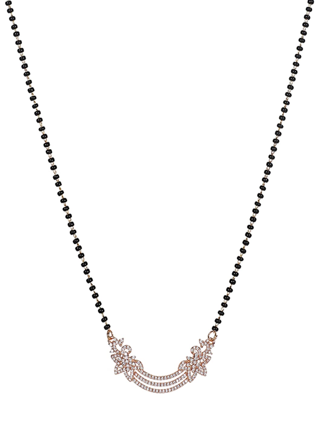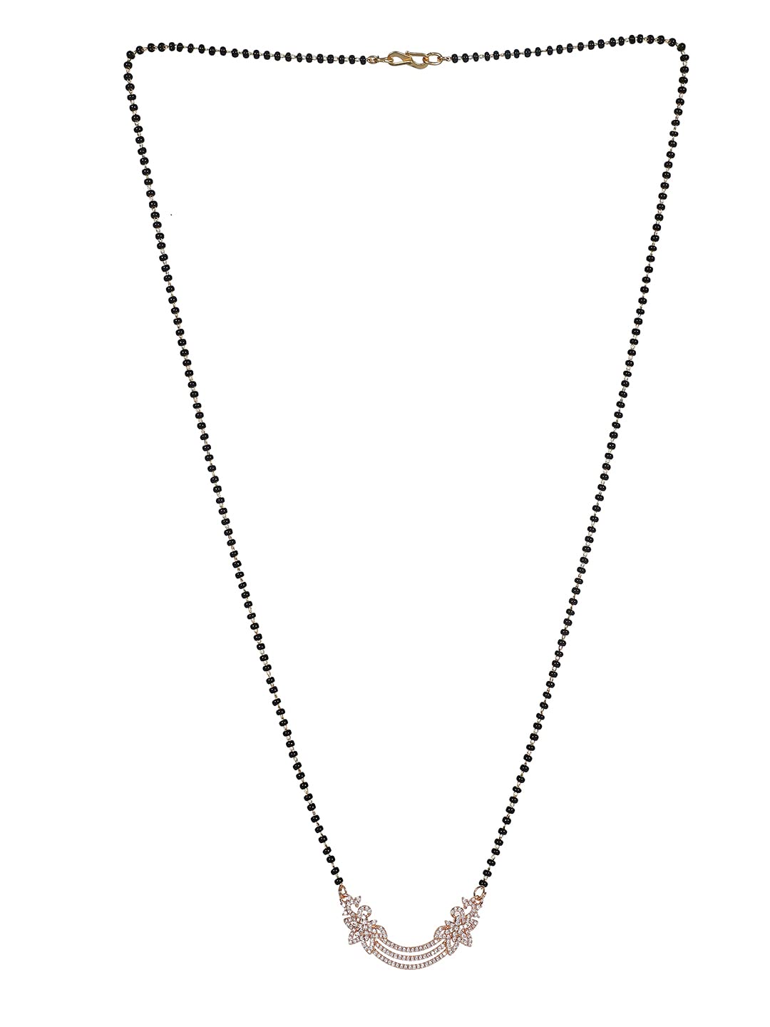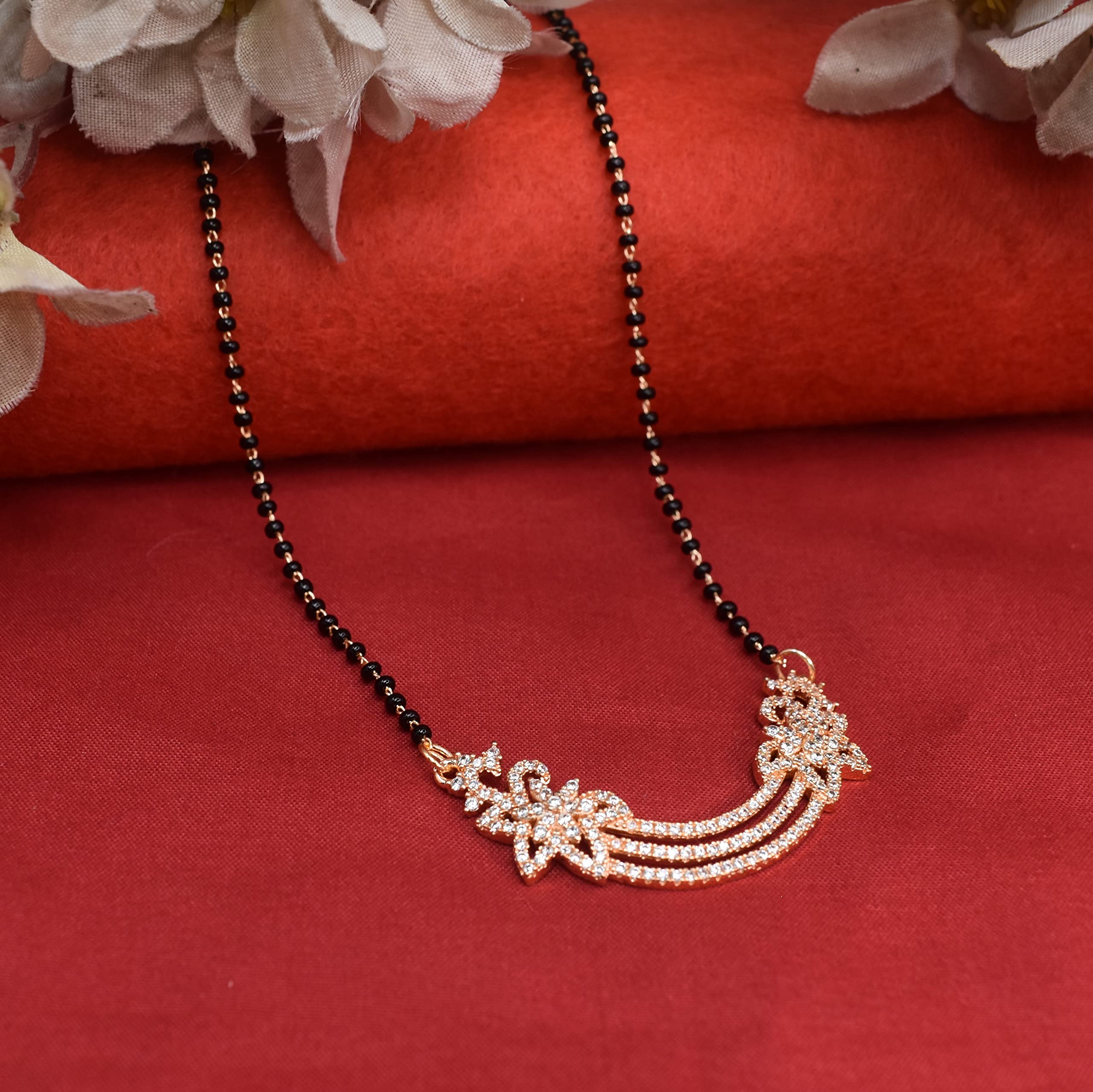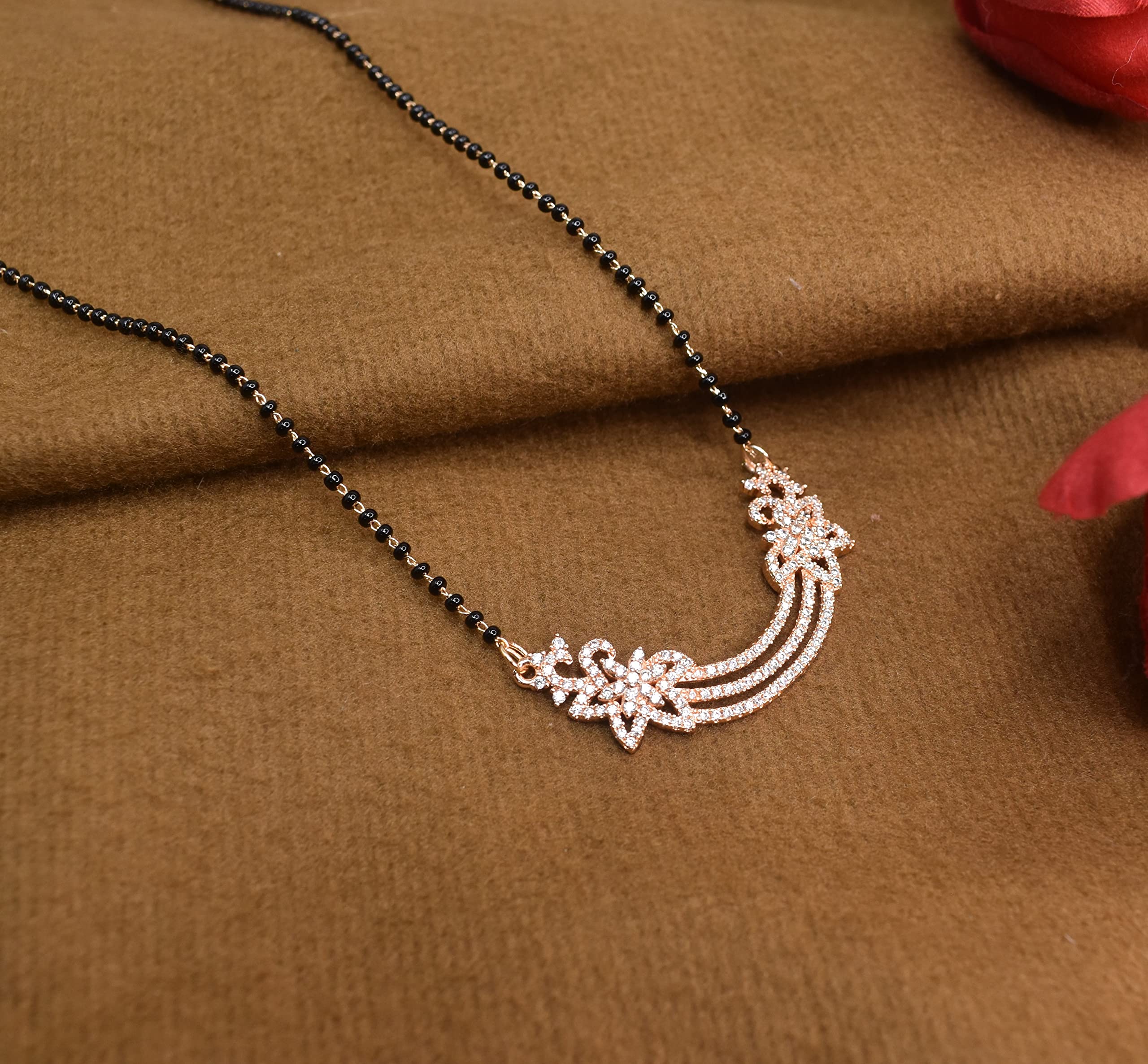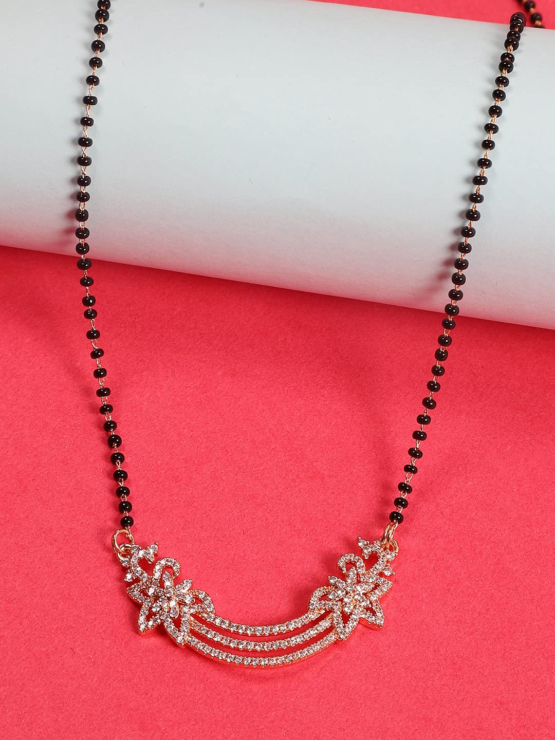 KUNDAN & MEENAKARI JEWELLERY Gold Plated Traditional Golden American Diamond AD Cubic Zirconia Pendant Mangalsura For Women