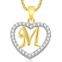 MEENAZ Gold Plated 'M' Alphabet with Chain in American Diamond Cz Pendant for Women