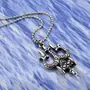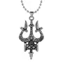 Religious and Holy Trishul Design Pendant thick and very attractive pendant for calm and happiness in life. Trishul bring tri shakti calm and composure in life. Suitable for everyday use in both office and home. Traditional Indian religious Trishul symbol pendant. Comfortable design with 3D features to highlight all details about the Trishul. The ultimate spiritual pendant this pendant comprises of three symbols associated with Lord Shiva. All the symbols too have the significance: 1. Trishul Trident: Trishul sygnified that Shiva is above all three states of human soul: Waking Dreaming and Sleeping yet he upholds and controls all three states It also symbolises the trinity of Brahma Vishnu and Mahesh. It also symbolises Shivas control on Land Sea and Sky. It is also a symbol of destruction for all the evils and bad omens for the mankind. 3. Damru Drum: It symbolises the Universe which is always expanding and collapsing according to Hindu mythology. This itself is a process of creation. It also is symbol of sound which itself is vibrant and lift human good spirits.