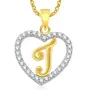 Valentine Gifts MEENAZ 'J' Letter Heart with Chain Gold Plated in American Diamond Pendant Lo.