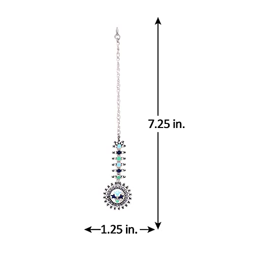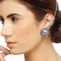 Women's Oxidised Long Chain With Circles And Blue Studs Kanauti Dangler Earrings(Free Size)(Silver)