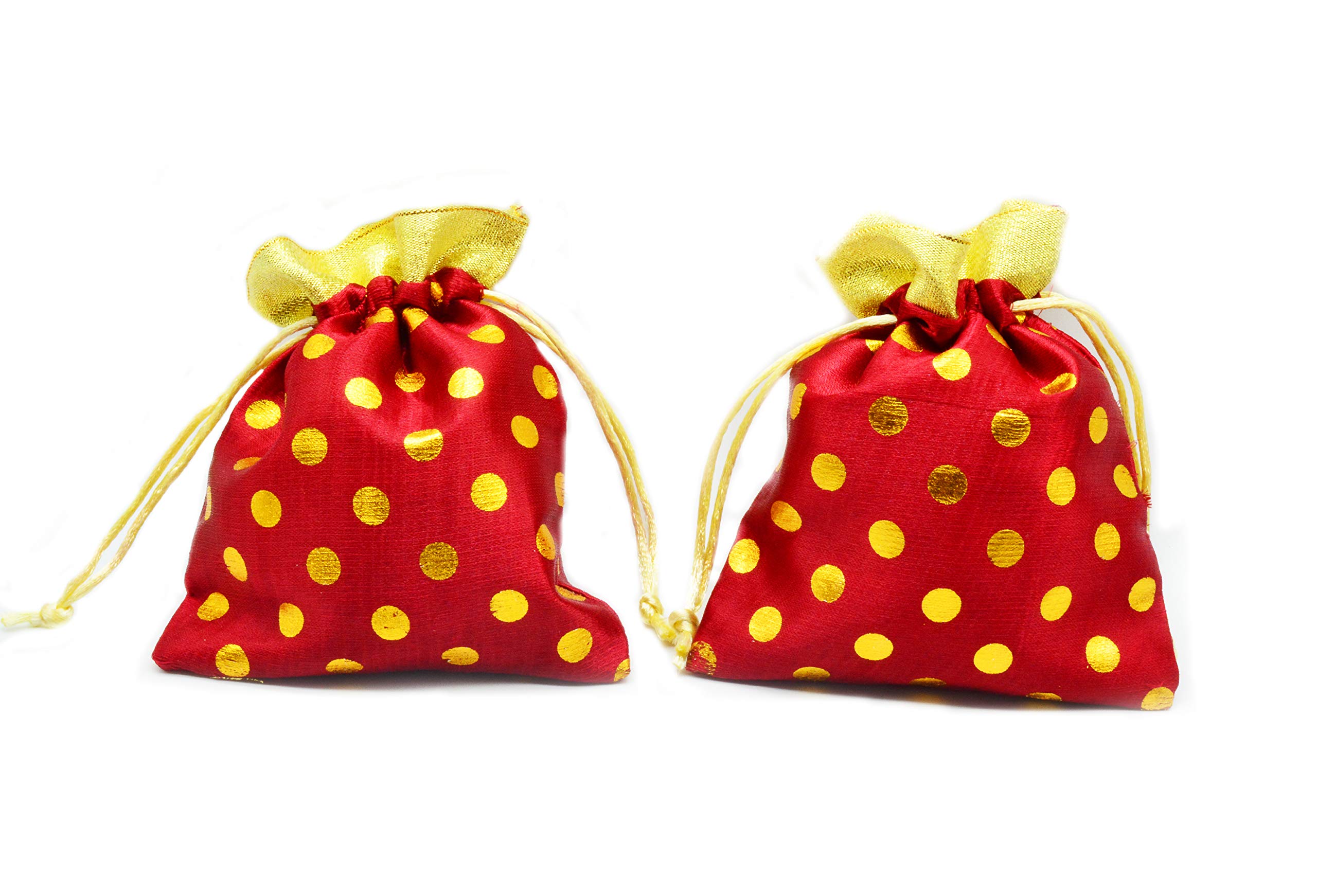 10 Pcs Gota Polka Potli Pouches Colorful for Gifts Jewellery Chocolates Shagun Party & DIY Craft WorkThese are small elegant and trendy designer polka potli pouches suitable for keeping gift items and also for storing small items in order to avoid hassles searching for them. These pouches are designed using round golden dotted patterns which adds an exquisite and traditional look to this tiny beauty. Ease of accessibility - It can be closed and opened easily with minimum effort. Easily Portable - as it is small in size one can carry it without any trouble.