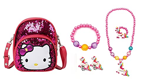 Aashiya Trades Girls Glitter Sequins Messenger Sling bag/ Backpack Crossbody Shoulder Bag for girls + Unicorn Necklace