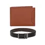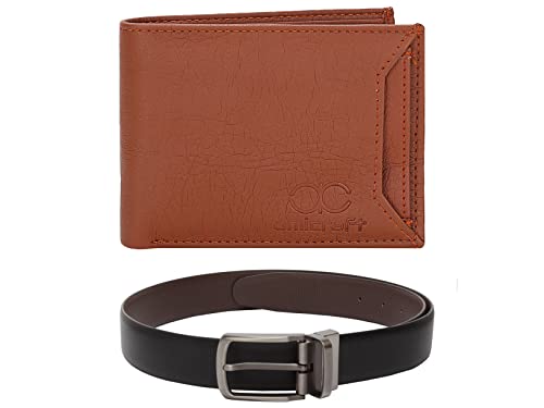 Amicraft Men's Combo Pack of Faux Leather Wallet and Belt(Tan and BlackFree Size)