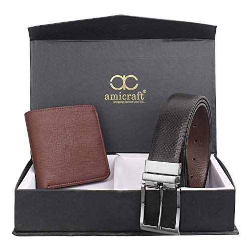 Amicraft Men's Gift Set Pack of Wallet & Belt Gift set (Size 28-44 Cut to fit men's Belt)
