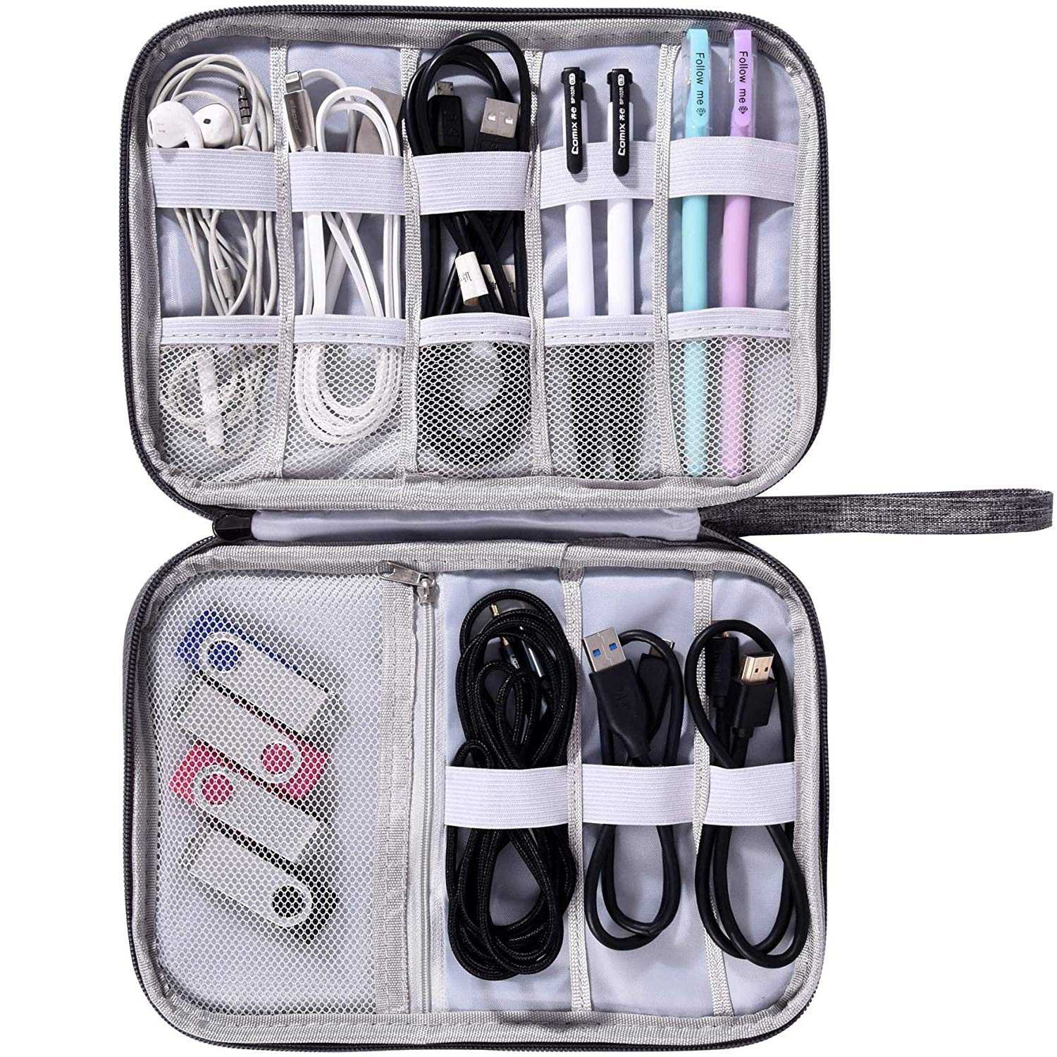 HomeFashionBagsElectronics Accessories Case Durable Small Electronics Accessories Storage Bag for Various USB Cables Hard Drive Phone Cords and Power Travel Gadget Carry Bag Grey