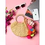 Habere India-All the Cultures Fabricating India Straw Bag, Small Tote Bag, Basket Bag, Bamboo Tote, Beach Bags For Women, Boho Bag, Kauna Bag, Handbag, Half Moon Bag - Contemporary, Beige, Beige, S