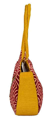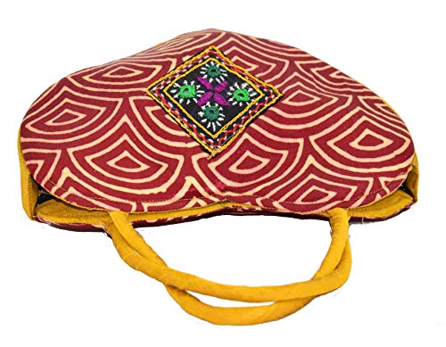 HEART Handle Purse - Mushru Silk Block Print Hand Embroidery Fusion Handicraft (Maroon)