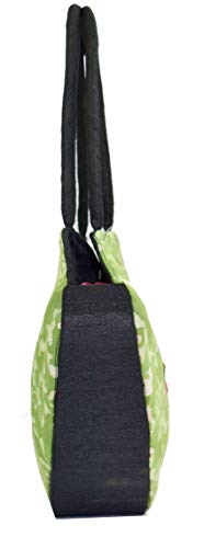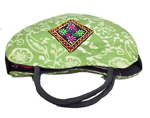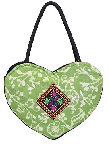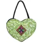 HEART Handle Purse - Mushru Silk Block Print with Kutchhi Hand Work Patch Fusion Handicraft (Green)