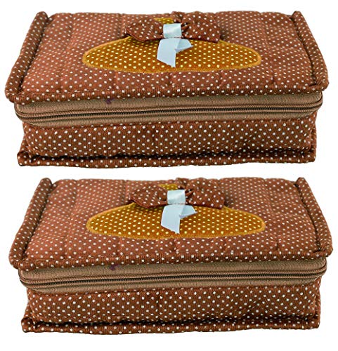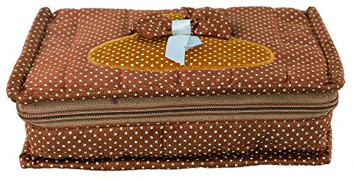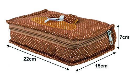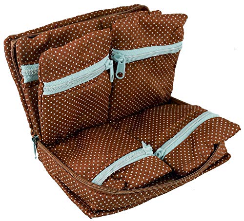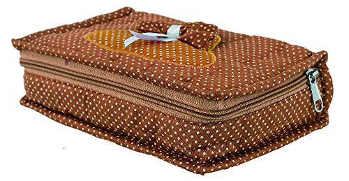 Heart Home Cotton Multipurpose 7 Pocket Dot Printed Jewellery Storage Bag Pouch/Travel Kit Organizer (Brown)-Pack of 2-KUBMART15433