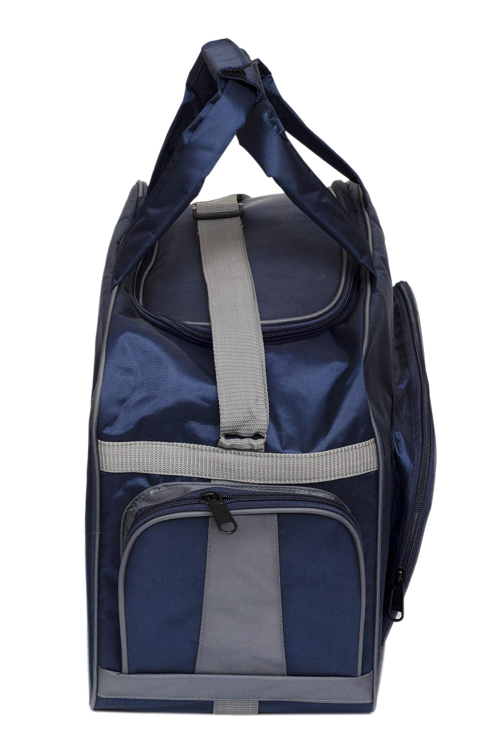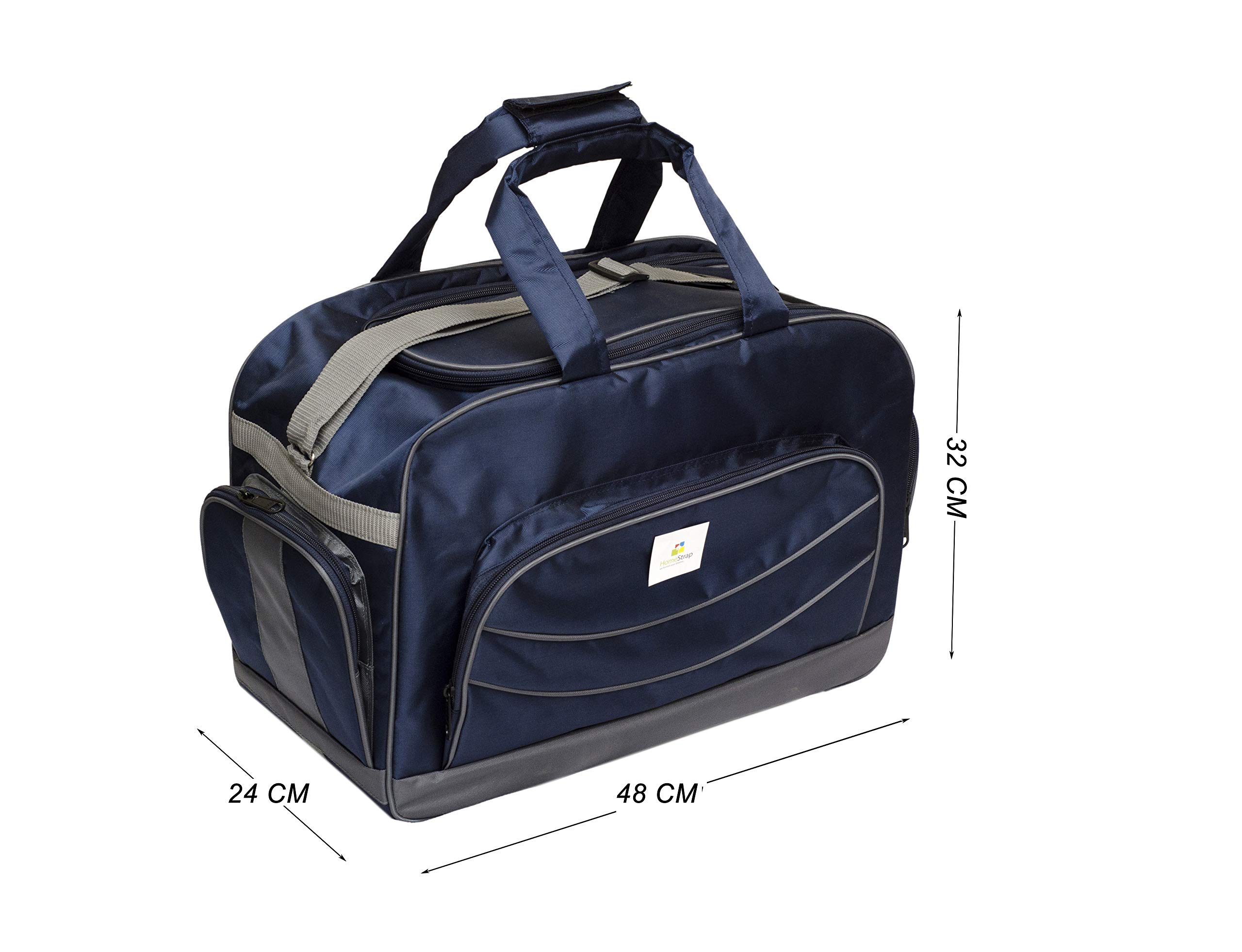 Made from tough and durable yet lightweight polyester material the entire range of duffel bags is available to buy online. With a spacious main section and complementary side and front pockets the duffel bags are designed to pack in all your necessary travel gear. Designed for unisex use the bags are available in a host of vibrant colours such as Blue and Grey.It has adjustable and detachable shoulder strap for your comfort. The handle has foam cushioning for better and easy gripping and strong base for added support. Homestrap travel duffel bag holds a capacity of 38 lts.