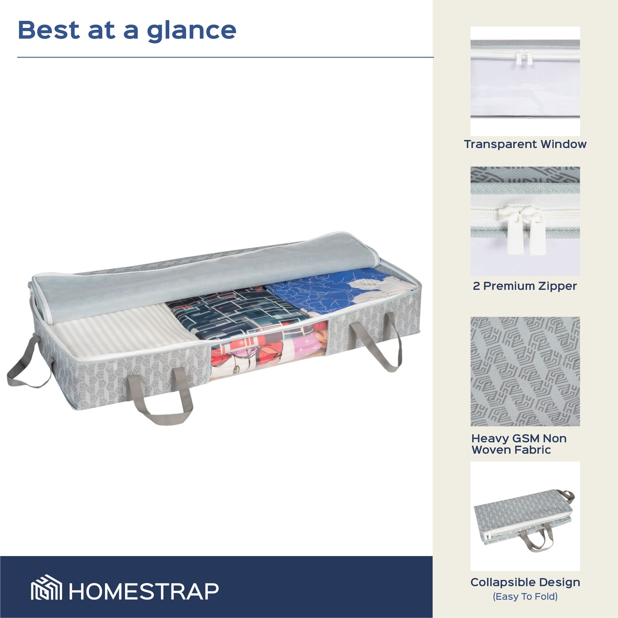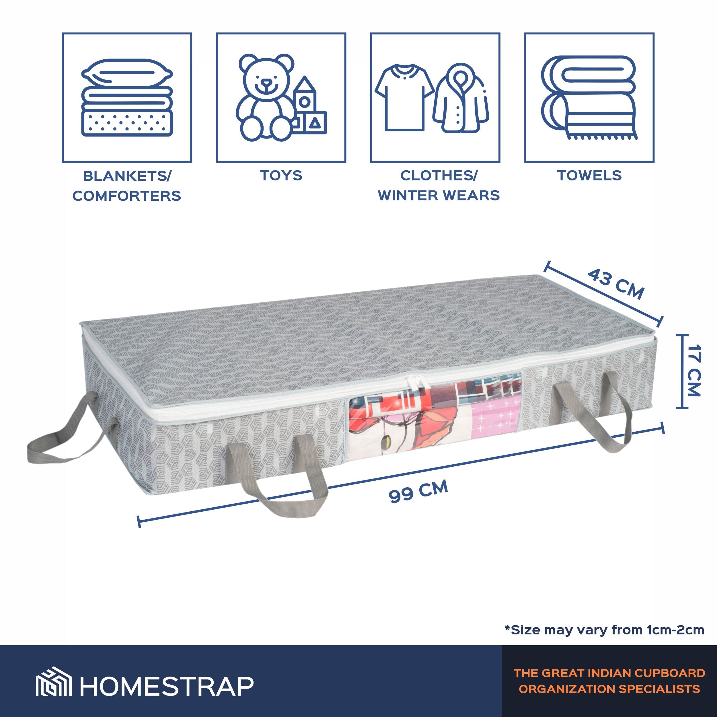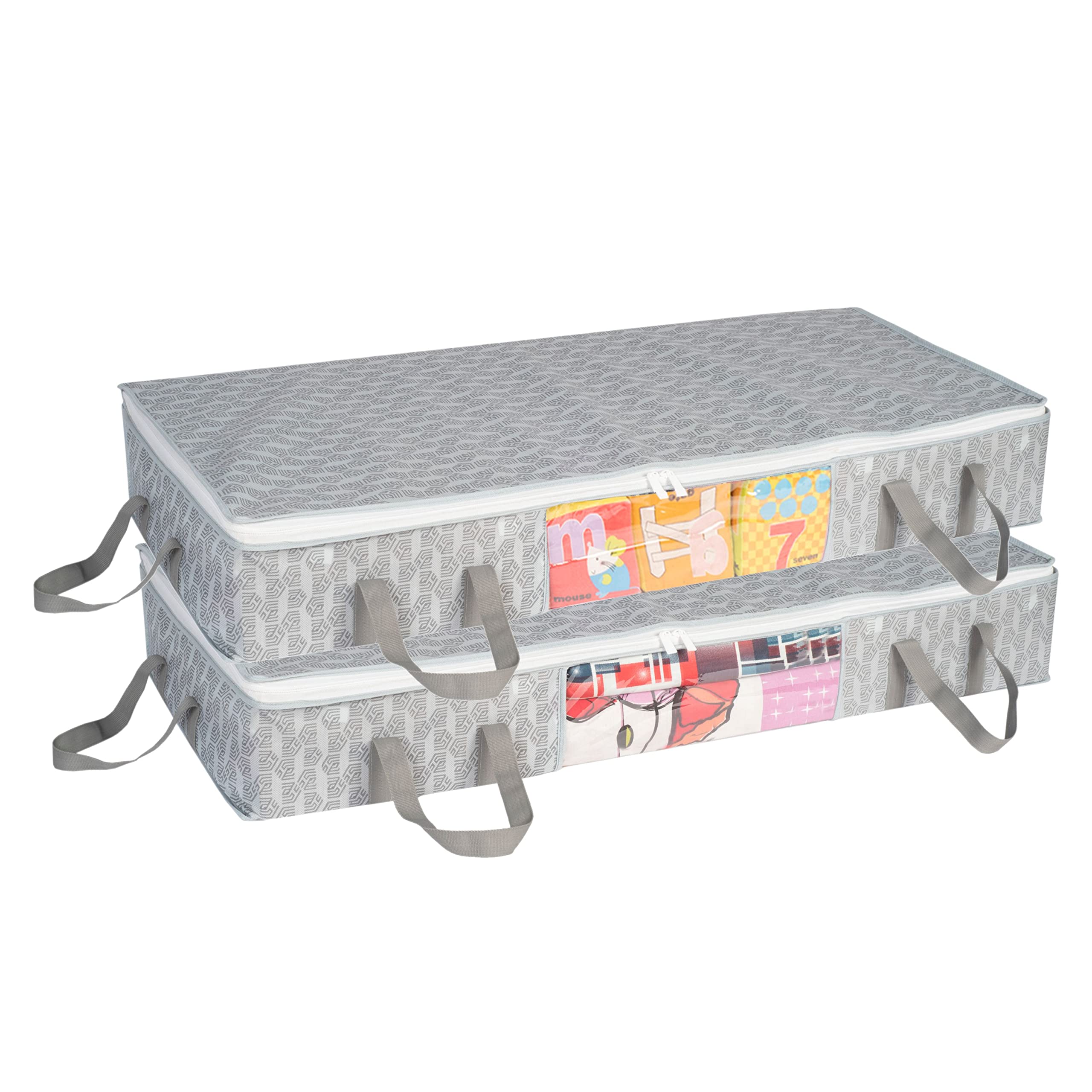 HomeStrap Polypropylene Set of 2 Rectangular Under Bed Storage Organiser Bag With Large Front Window Zipper (Grey) (Shark Tank Product)