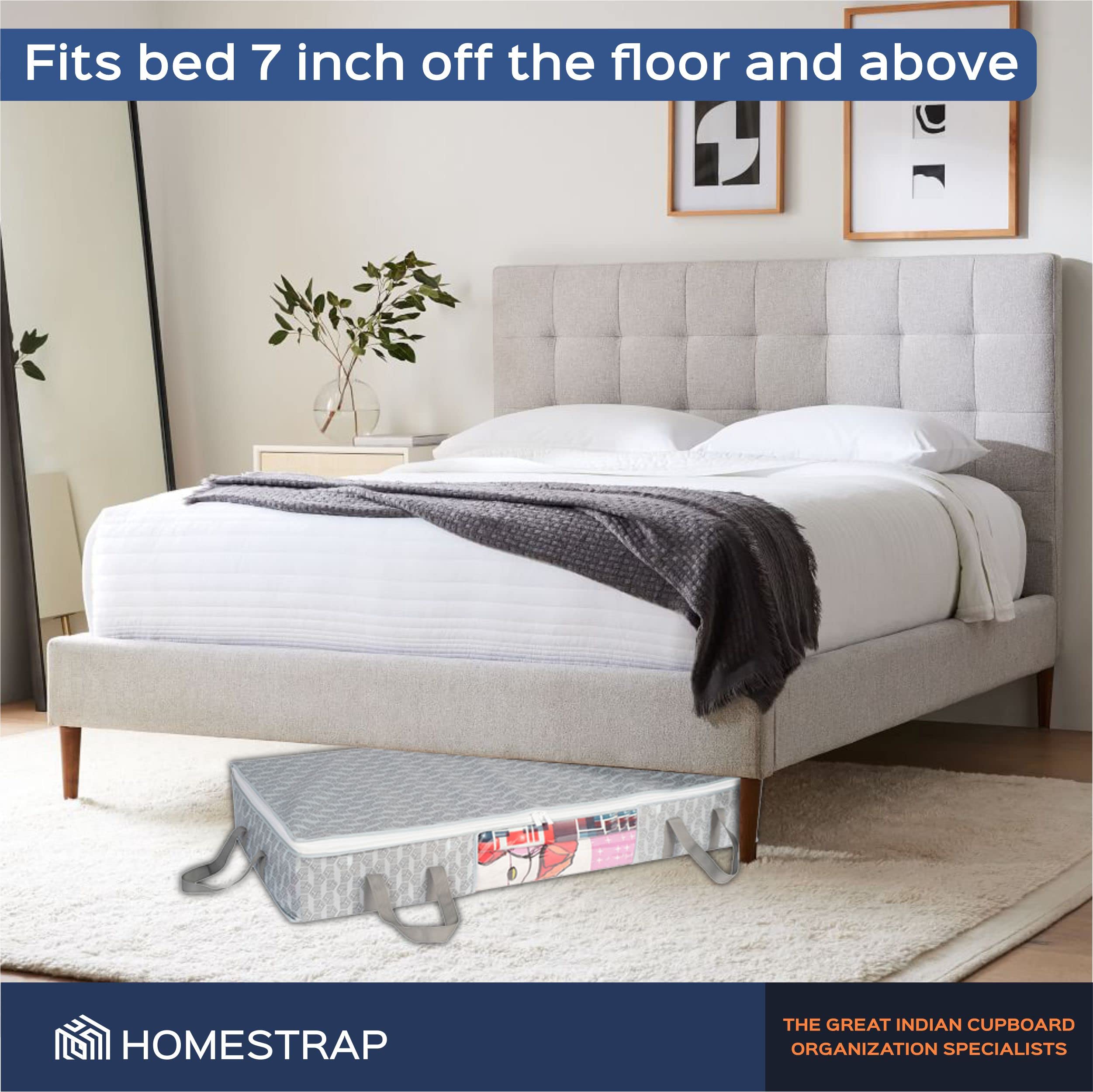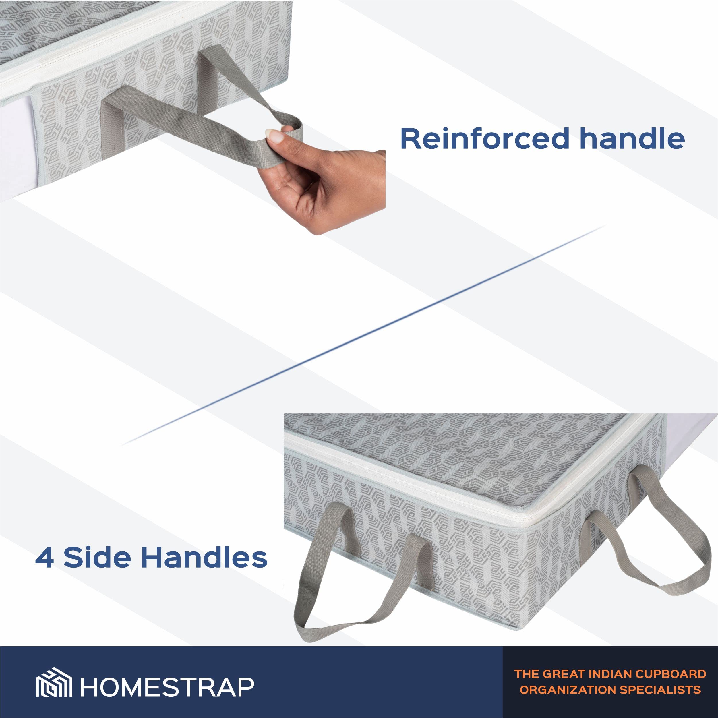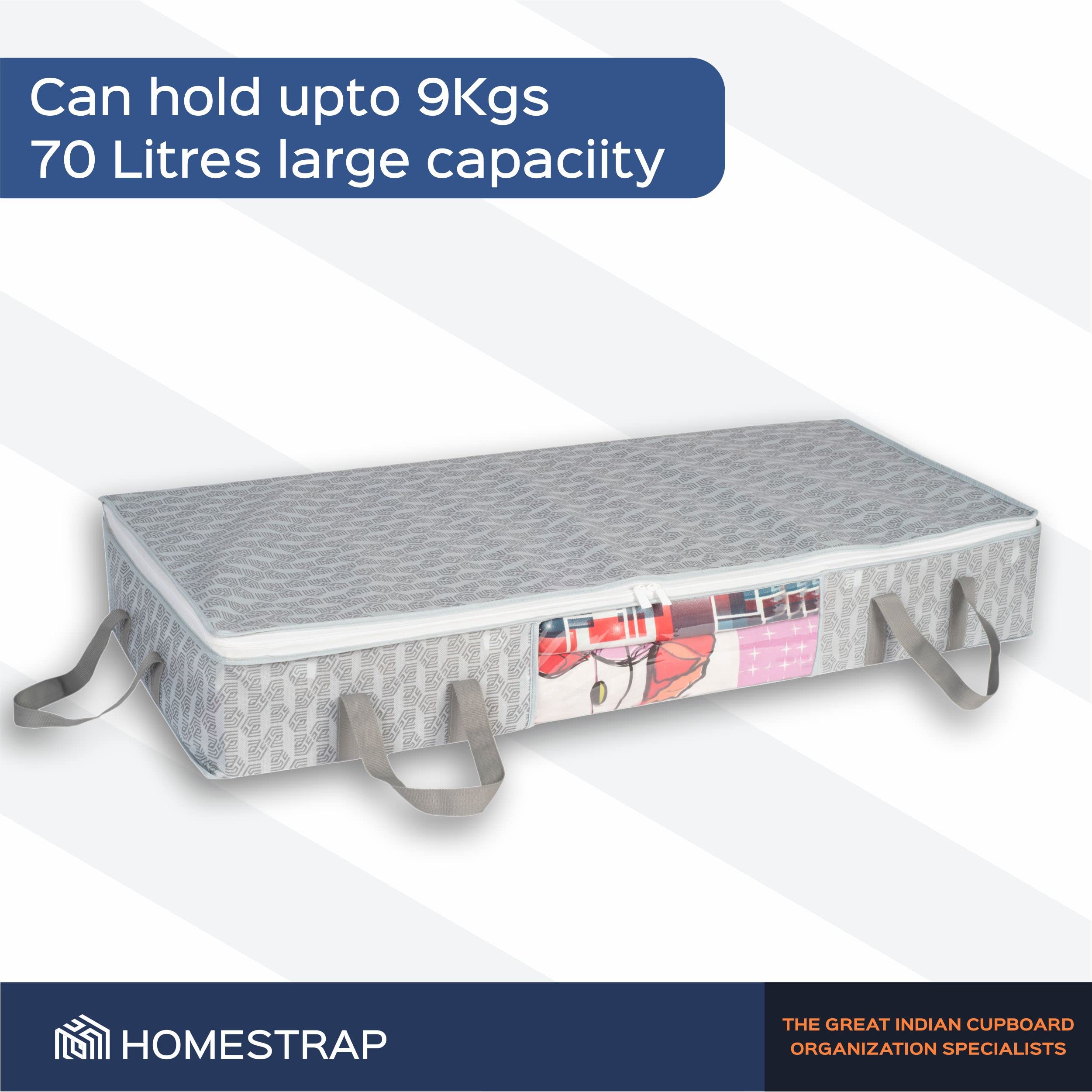 HomeStrap Polypropylene Set of 2 Rectangular Under Bed Storage Organiser Bag With Large Front Window Zipper (Grey) (Shark Tank Product)