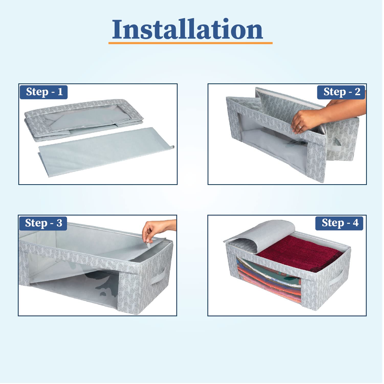 • Non woven material and Odour free Design The Saree stacker is made from high GSM non woven fabric. Which is strong and long lasting. It protects from Dust Moisture and Moths | Capacity More than 8 10 Heavy Saree in each bag Carefully stitched to offer ad