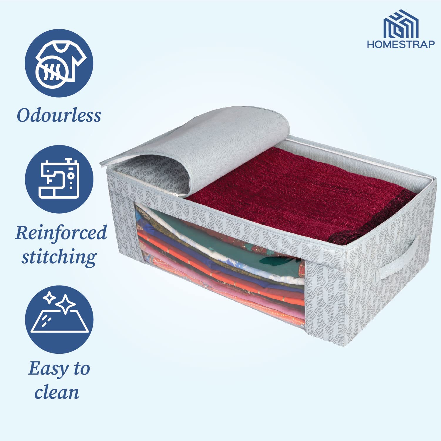 • Multi purpose Storage Bag The Homestrap Saree Bunker isn't just your average saree organizer it's a versatile multi purpose storage bag. Its standout feature lies in its adaptability serving not only as a fantastic saree organizer but also as a flexible s