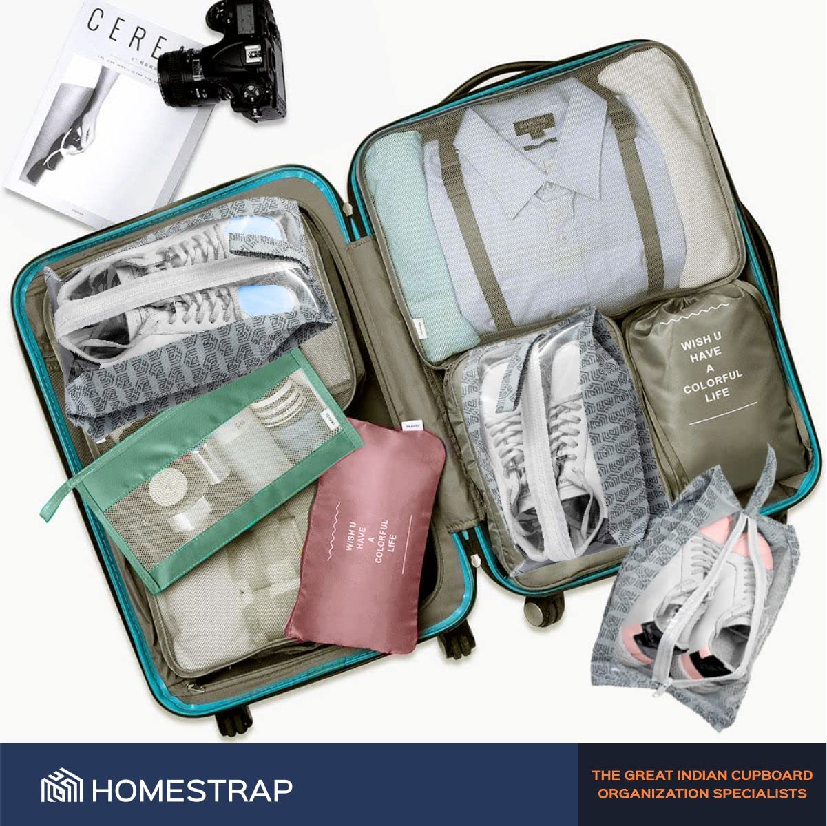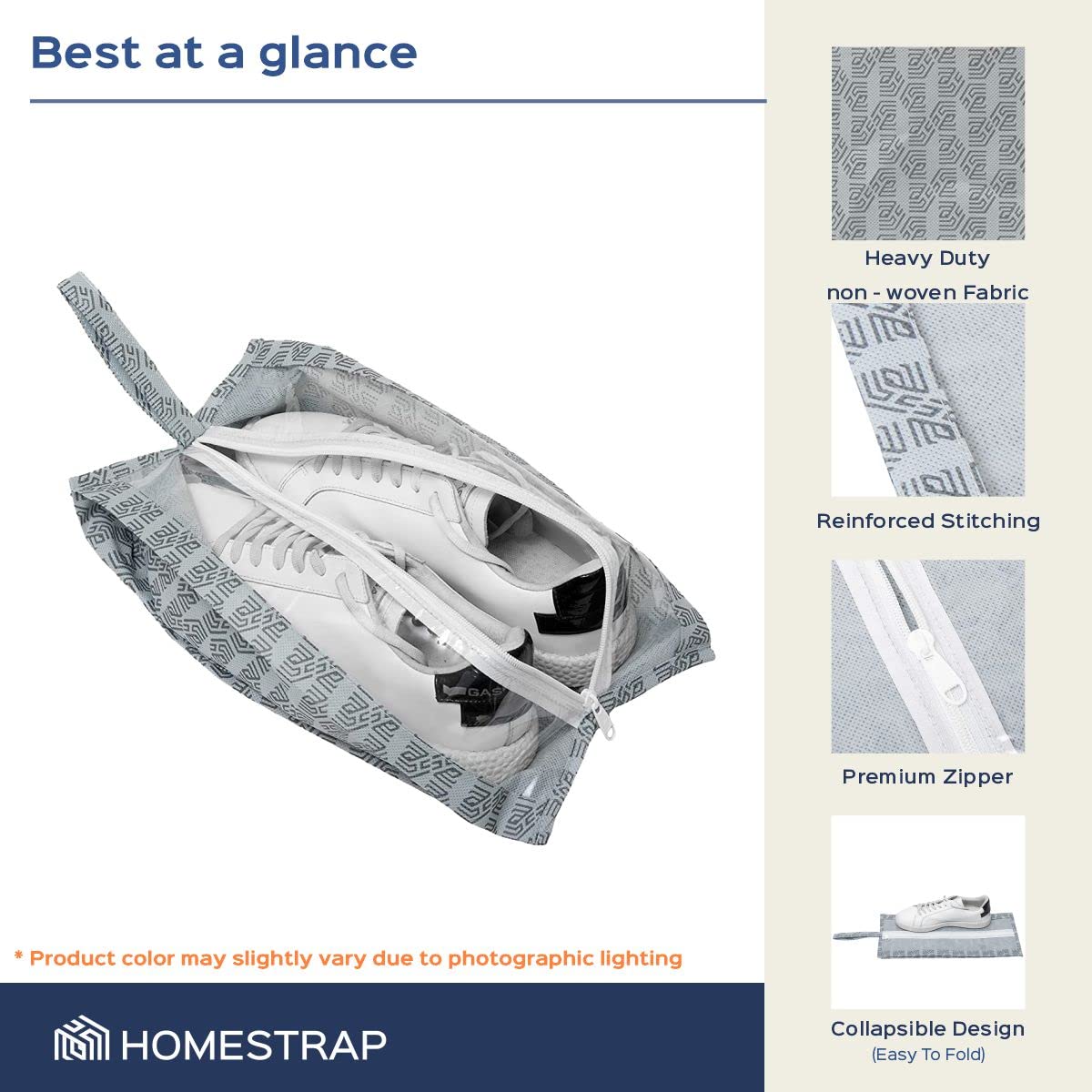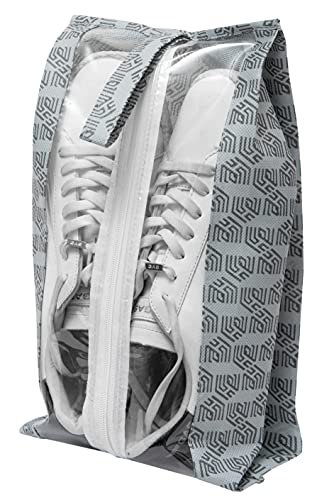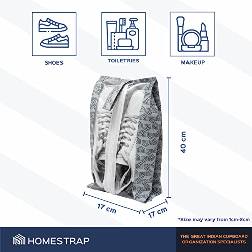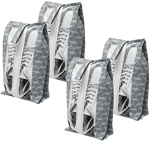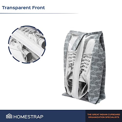 HomeFashionBagsHomestrap Set of 4 Printed Shoe Bags for Travel | Transparent Top with Zipper | Dustproof Multi-Functional Shoe Storage Bags | Ideal Travel Organizer Pouches for Luggage | Grey
