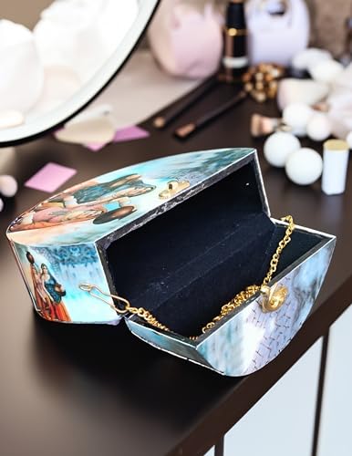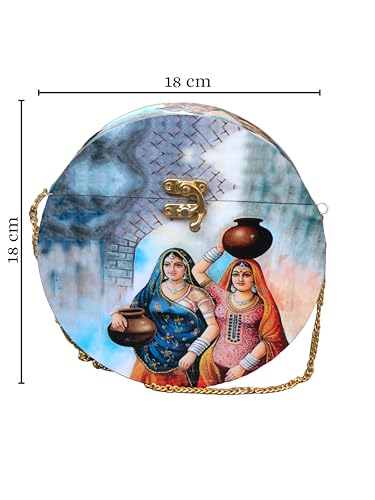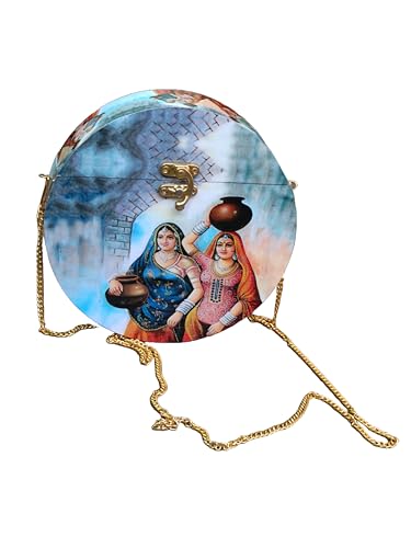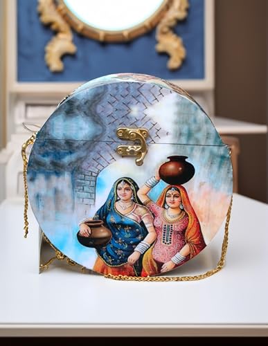 Clutch box is made of Mango Wood with Resin coated print on the outer side which is durable and give ethnic look. Bag has same design in back side also .Removable hidden-clasp chain You can wear it as cross body bag shoulder bag or clutch for your preference.. Also solid clasp closure can keep your outing essential secure. This women clutch can fit phone or cards cash lipstick compact etc.Handcrafted Laser Cut Stylish Fashionable Wooden Party Wear Sling Hand Bag for women.Perfect to keep Cellphone and other small accessories. Bag Size : 7 * 7 * 2 Inch Detachable Chain having Length 20 Inch .