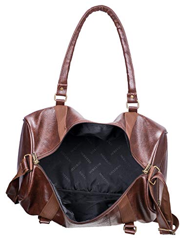 Premium quality cabin size PU duffle bag Comes with a main compartment and additional pockets for other accessories. It can be used as a travel bag duffel bag overnight bag weekend cabin duffel bag etc. Suitable for short-distance travel business trip weekend trip this stylish PU leather duffle bag can be carried as cabin bag. This trendy duffle bag is spacious enough to hold at Least 2-3 Days Clothes and other essential items to small trips.