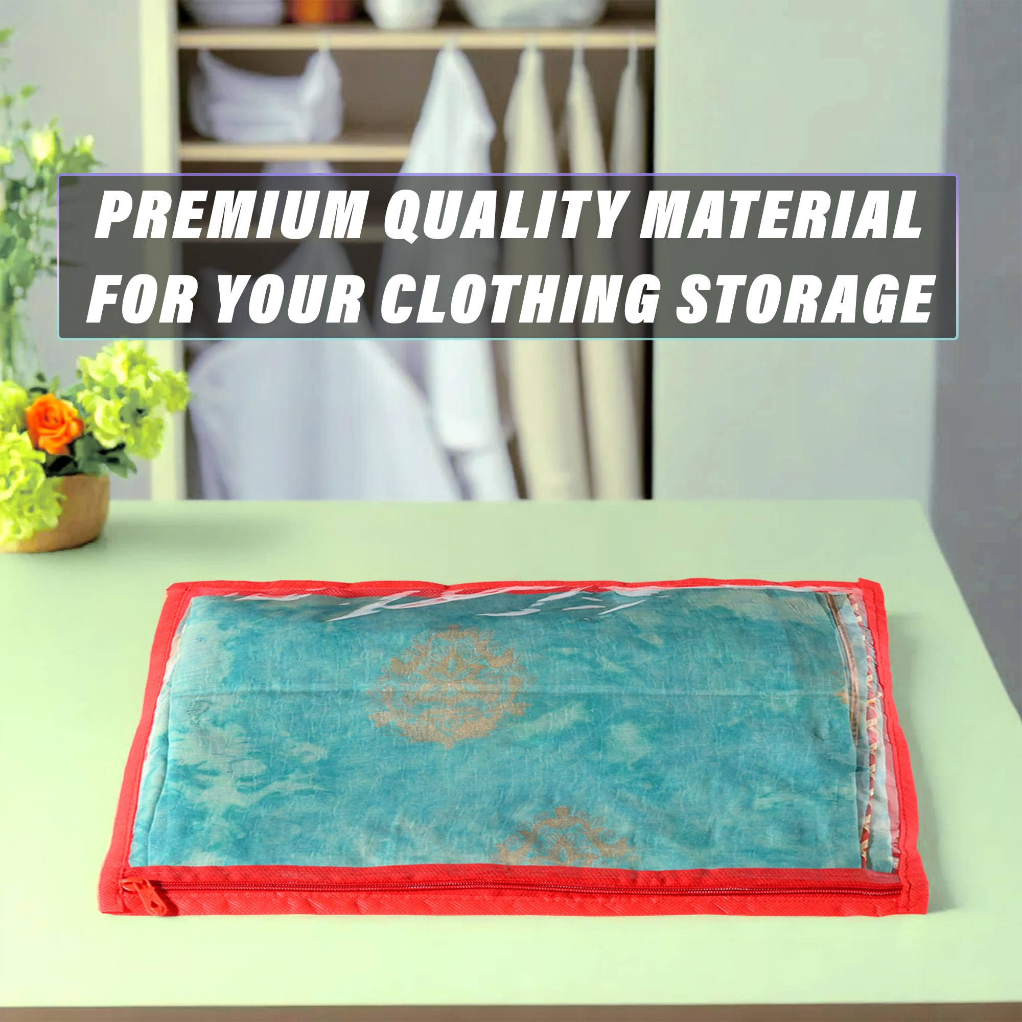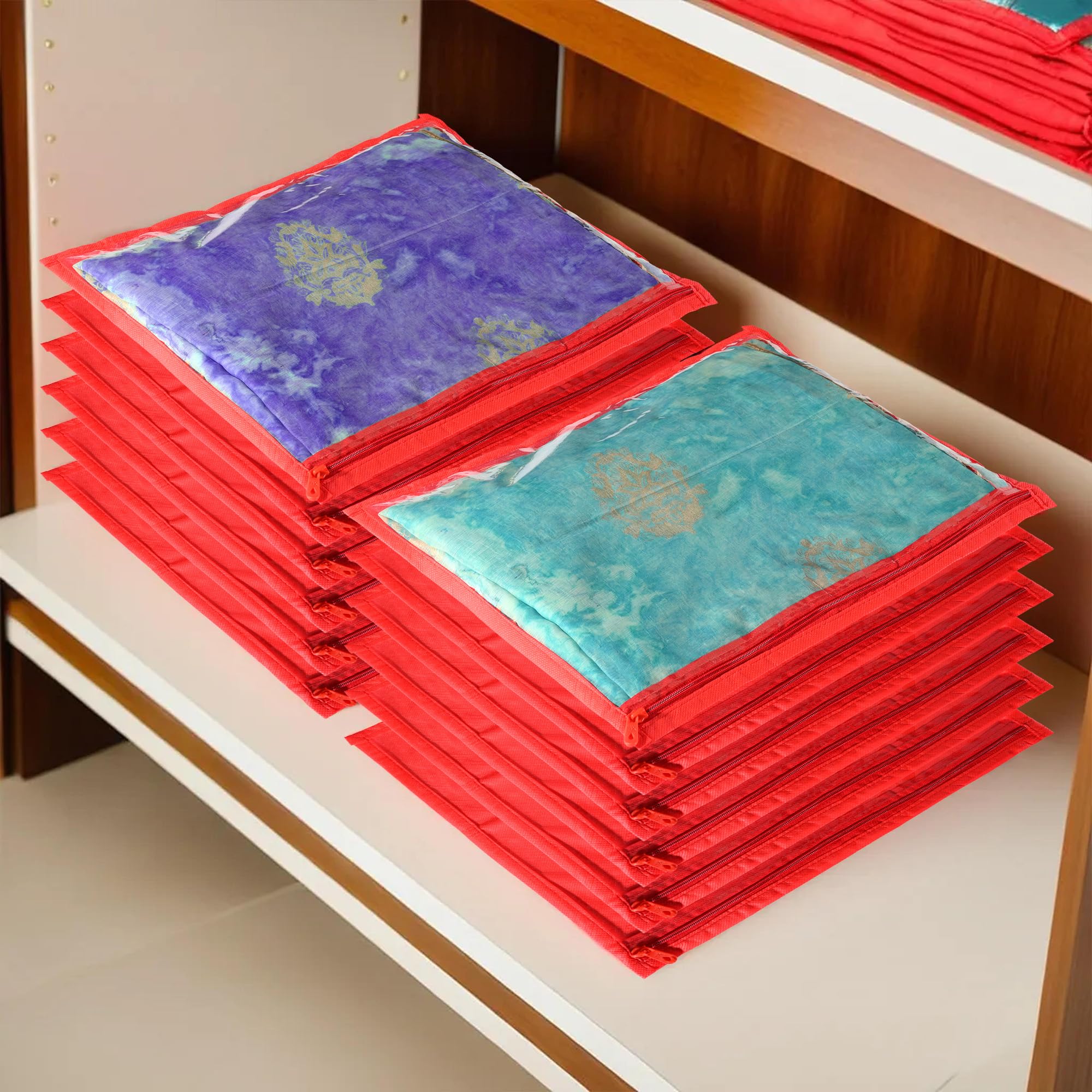 Kuber Industries Clothes Organizer For Wardrobe (Pack of 12) - Single Storage Organizer For Saree | Salwar Suit | Lehenga | Clothes - Dress Organizer For Wardrobe - Single Saree Covers With Zip (Red)