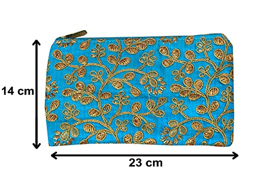 Kuber Industries Embroidery Women Hand Purse Wallet For Party Wedding Dating (Blue)