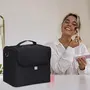 The bottom storage of the vanity bag is suitable for UV lamps creams bottles makeup remover hair dryer crafts DIY tools USB cables chargers. The trays of the cosmetic case are a perfect solution for storing the nail polishes eye-shadows lipsticks nail tools and hairdressing tools. The zipper net pocket on the lid of this large makeup box is a perfect solution for organising the makeup brushes eye-liners and other makeup tools. This makeup travel bag comes with a removable shoulder strap you could carry the box easily during the trip. The thicker handle is comfortable for carrying the vanity case. You could take the makeup organiser case off the bag to clean. Only simply wipe with a paper towel or a damp cloth to clean the stains on the trays.