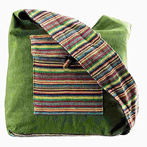 This sober yet stylish bag in Green colour is a must buy this summer season. This designer shoulder bag is made with plain Green colour jute cloth and has a multicolour lining pocket at the front of the bag. The appreance of this pretty bag is traditional yet fashionable. The bag is finished with matching shoulder sling for characteristic charm.