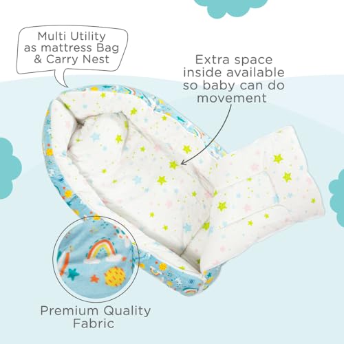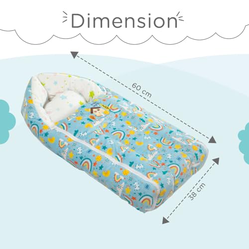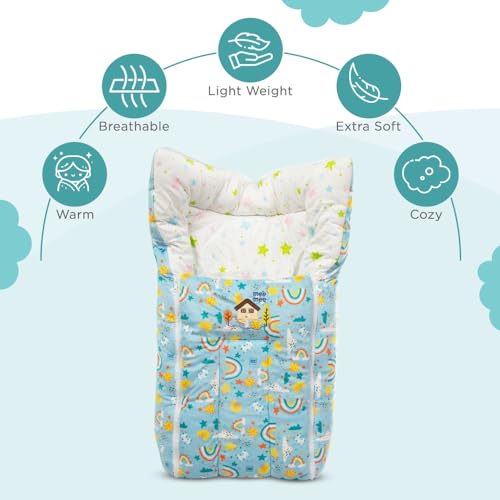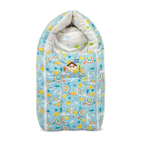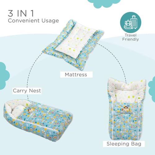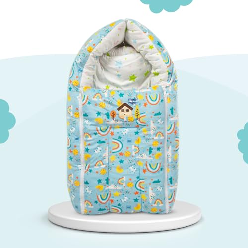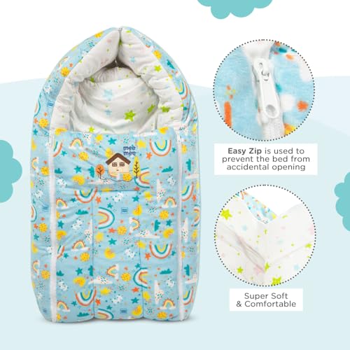 HomeFashionBagsMee Mee 3 in 1 Baby Bed, Sleeping Bag & Carry Nest, House Print, Shearing Finish & Cotton Soft from Inside, Machine Washable & Portable Bassinet, 0M+, Blue