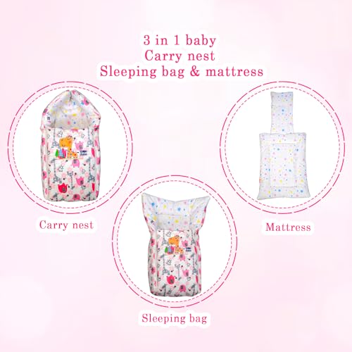 Mee Mee 3 in 1 Baby Bed, Sleeping Bag & Carry Nest, Koala Bear Embroidery, Shearing Finish & Cotton Soft from Inside, Machine Washable & Portable Bassinet, 0M+, Pink