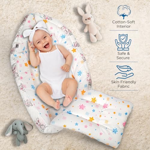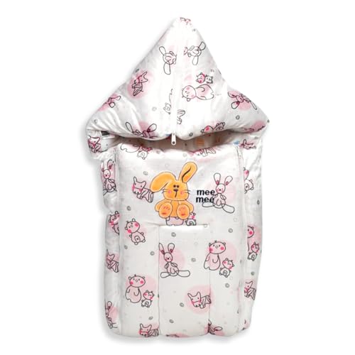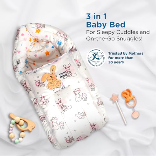Mee Mee 3 in 1 Baby Bed, Sleeping Bag & Carry Nest, Rabbit Embroidery, Shearing Finish & Cotton Soft from Inside, Baby Bedding for New Born & Infant, Machine Washable & Portable Bassinet, 0M+, Pink