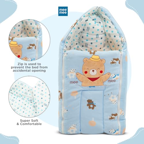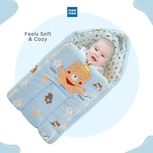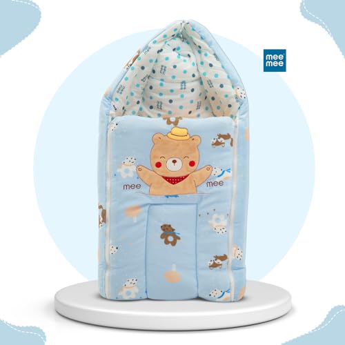 Mee Mee 100% Soft Cotton Hooded Baby Wrapper Cum Warmer, Blanket with Hood for New Born Baby 0 to 6 Months