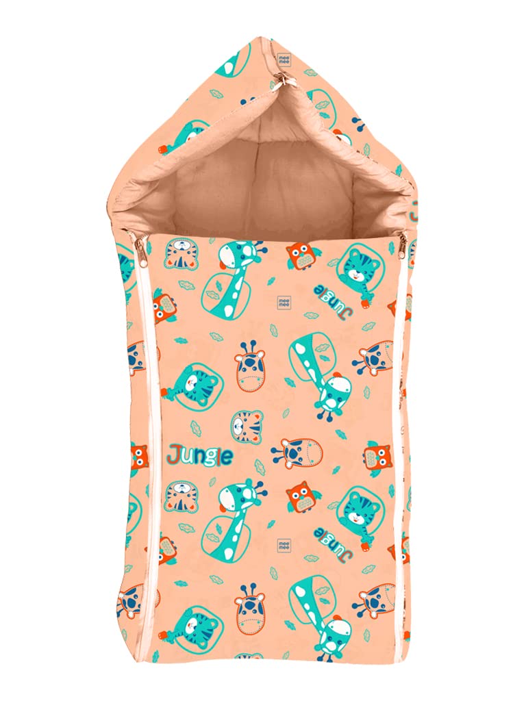 Mee Mee 3 in 1 Baby Carry Nest with Sleeping Bag and Mattress for Newborn Babies (Orange) (Orange Jungle Print)
