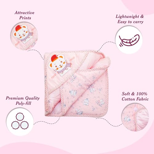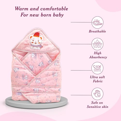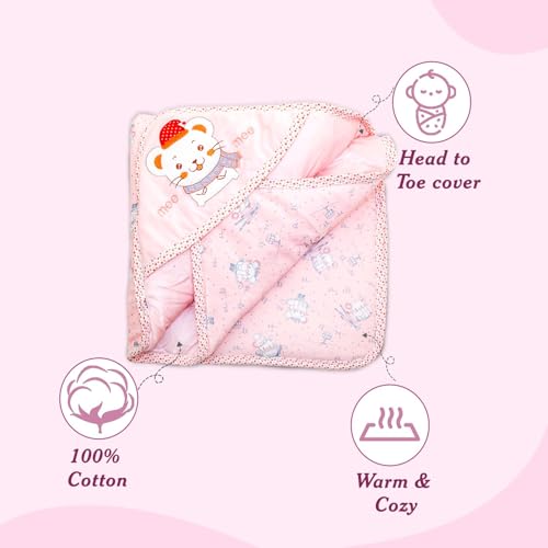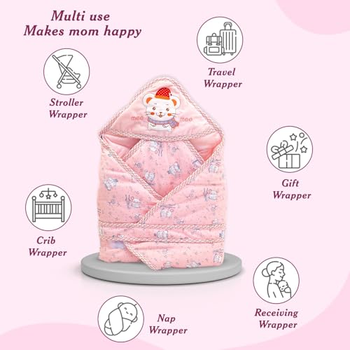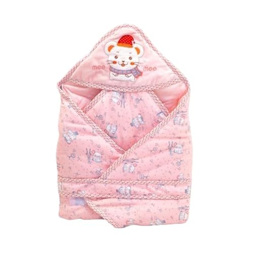 HomeFashionBagsMee Mee Baby Hooded Wrapper for Newborn Baby | Warm and Soft Swaddle Wrapper | Double Layered Sleeping Bag for Newborn Babies (Pink-Bunny Print)