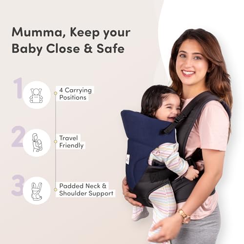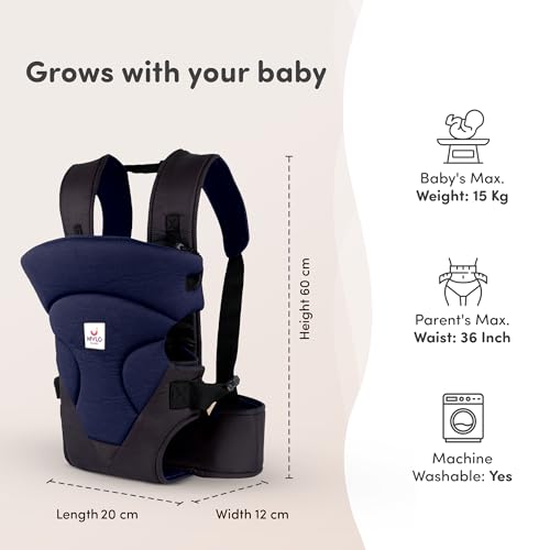 Mylo Baby Carrier Bag for 4 to 24 Months | Max Weight 15kg | with 4 Comfortable Carrying Positions | Lightweight & Travel Friendly (Blue & Black)