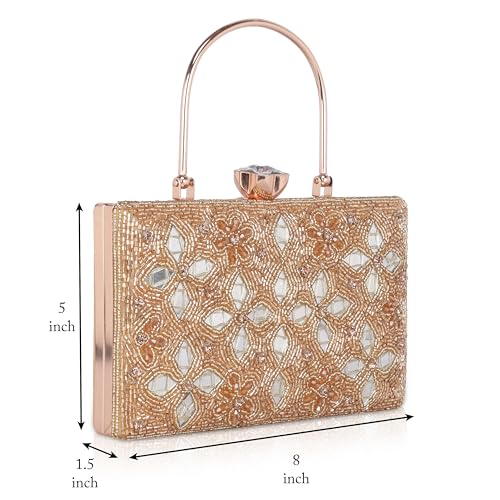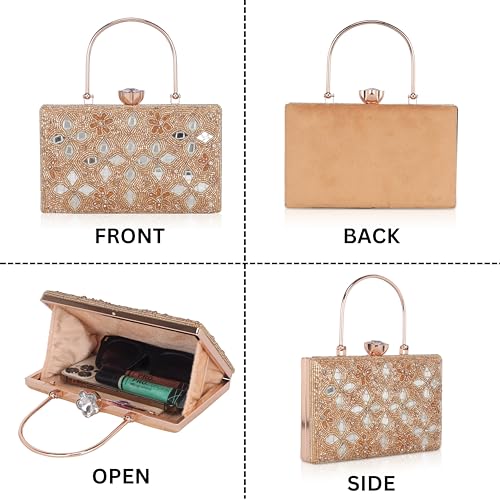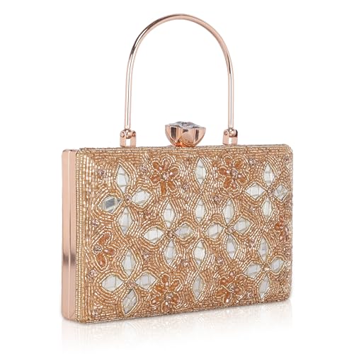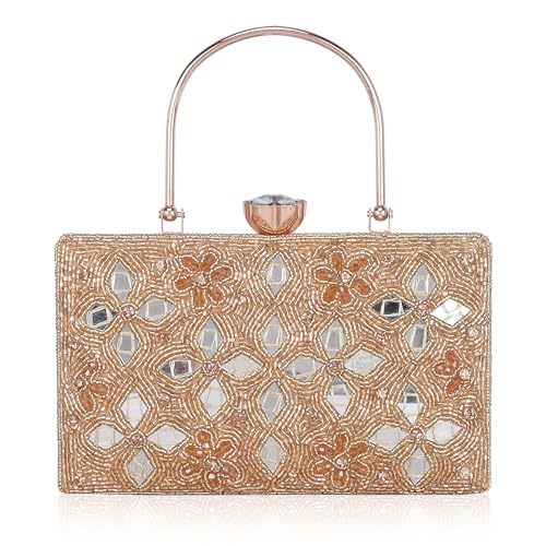 Nicoberry Women's Glitter Floral Rhinestone Beaded Evening Party Clutch Wedding Bag Wallet, Gold