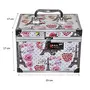 Pride large aluminium framed Jewellery vanity case with a faux leather effect covering and perfect for storing make up Jewellery bangles cosmetics and toiletries. It comes with robust design easy grip carry handle faux maroon suede interior for a luxury finish and a number lock to keep your items safe and secure. A stunning vanity case crafted beautifully for professionals and perfect for home use. This gorgeous cosmetics/Jewellery case is made from silver hinges which guarantees durability. The stylish handle also ensures easy transportation with its lightweight nature. The case comes with a number lock not only complementing the hinges but provides ultimate security for example when taking it away for the weekend you know your cosmetics will be safe and secure. A must have for sorting make up beauty products jewellery And More!! SIZE : 23*17*17 CMS