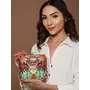 Be the star of the party by styling your outfit with this stunning clutch by Priyaasi. It is crafted in a square-shaped multicolor printed design enclosed with a click closure. It has a detachable chain strap.