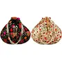 Potli Bag is a Ethnic Stylish Clutch kind of Indian Handbag Potli bag looks very nice with any traditional dresses also goes well with any Casual Indian Dresses. Spacious Compartment that can easily carry today's big smartphonesmobiles and other valuables things. Potli bag are designed for any evening party or casual occasions at any time of the day. Marriage ceremonies to all kind of wedding parties. It can be one of the best gift for any woman. They will just Love it. This Stunning Potli Bag Is Made From Raw Silk With The Embellishment Of Embroidery Sequin Beads And Pearls Etc.