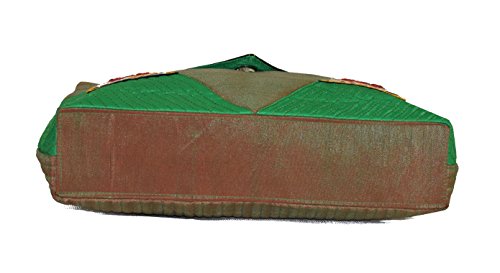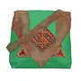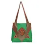 Raw Silk Big Flapper Bag with Kutchhi Patch work front face TOTE BAG EK-TOT-0004 Green - Brown