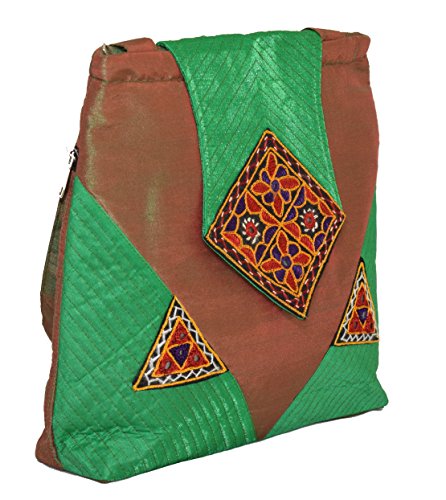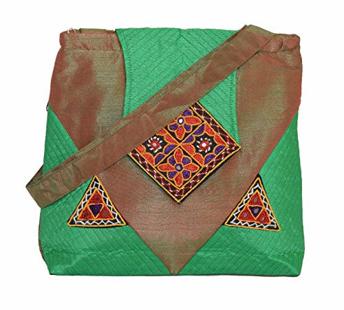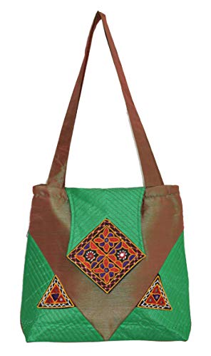 Ethnics of Kutch Women's Ethnic Kutch Handicraft Aahir Hand Embroidery Patch WorkShoulder/Shopping bags are attractive blend of Ethnic Style with Contemporary look for women of every age. This beautiful raw silk shoulder bag with beautiful colour combination is fusion of Ethnic Kutch Handicraft work and modern looking design. Carry it on your shoulder wherever you go be it a party or gathering casual and routine use its looks and shine will make you stand out from the rest with its unique looks and design