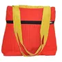 Raw Silk Big Flapper Bag with Kutchhi Patch work front face TOTE BAG EK-TOT-0004 Yellow-Red