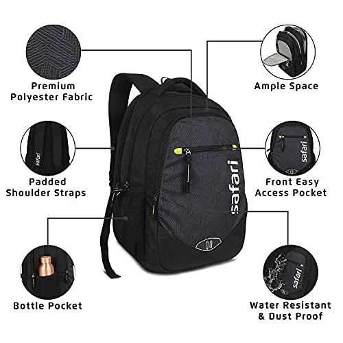 Safari Tribe is a 35 Litres 3 compartment laptop backpack perfect for daily usage. It has a dedicated tech safe laptop sleeve that can hold upto 17 inch laptop or any smaller ones easily. The laptop sleeve is also fully padded from the bottom protecting your device from any shock or damage. This backpack is especially designed for todays fast paced world where everything should be compact and lightweight. This backpack is perfect for everyday usage such as office college school tuitions or short holiday trips. The front pocket is designed to keep your essentials organized and side mesh pockets are perfect for storing your water bottle and umberella. Made of high grade water resistant polyester fabric this backpack will last you several trips.